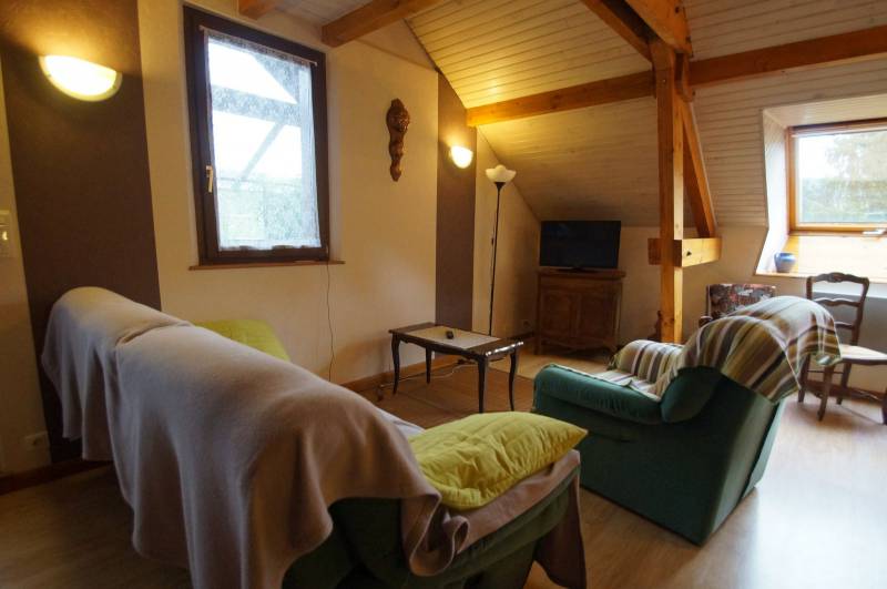 L'appartement de 100m2 est au 1er étage de notre grande maison, située dans les dernières habitations du lieu dit résidentiel Marzelay, de faible densité, à 3 km des commerces de Saint-Dié des Vosges. L'environnement est très calme, proche de la forêt du massif de la Bure.